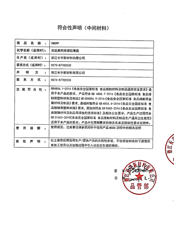 Changyuは、中国市場で「パッケージング用の透明アルミニウム酸化アルミニウムフィルム」の先駆者であり擁護者であり、この製品の開発と促進のために絶え間ない努力をしてきました。Changyuは、継続的な主要な国家標準プロジェクトの「質の高い酸化物の質のある一般規則」の透明なプラスチックラミネートフィルムとポーチングのためのポーチング」の説得力を持っています。